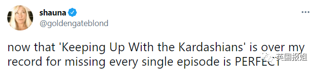 “完美,我终于达成了一集《与卡戴珊同行》都没看的记录!”