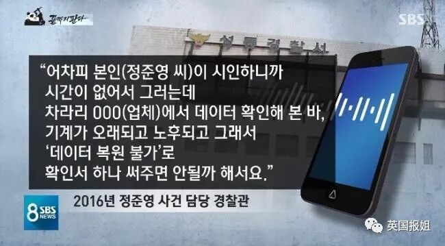 2019年再重新调查2016年的郑俊英涉嫌非法偷拍事件时,警方发现了毁灭证据的方法,和要求数据无法复原确认书的通话录音。