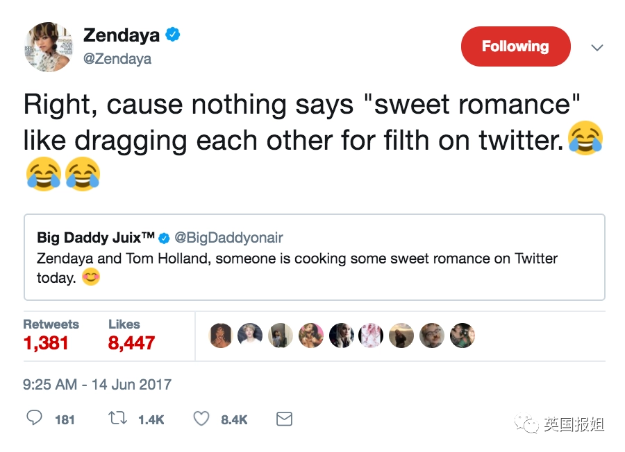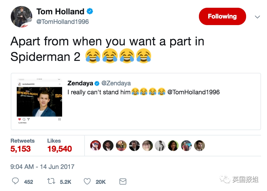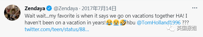 据说他们在拍《蜘蛛侠:英雄归来》的时候就开始交往。两人2017年在互联网上的一次调侃扯皮,拉开了恋情谣言的序幕。