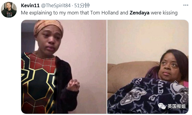 “妈妈问我为什么哭得这么大声。我穿着蜘蛛战衣跟妈妈解释了荷兰弟和赞达亚车内热吻的事情经过。”