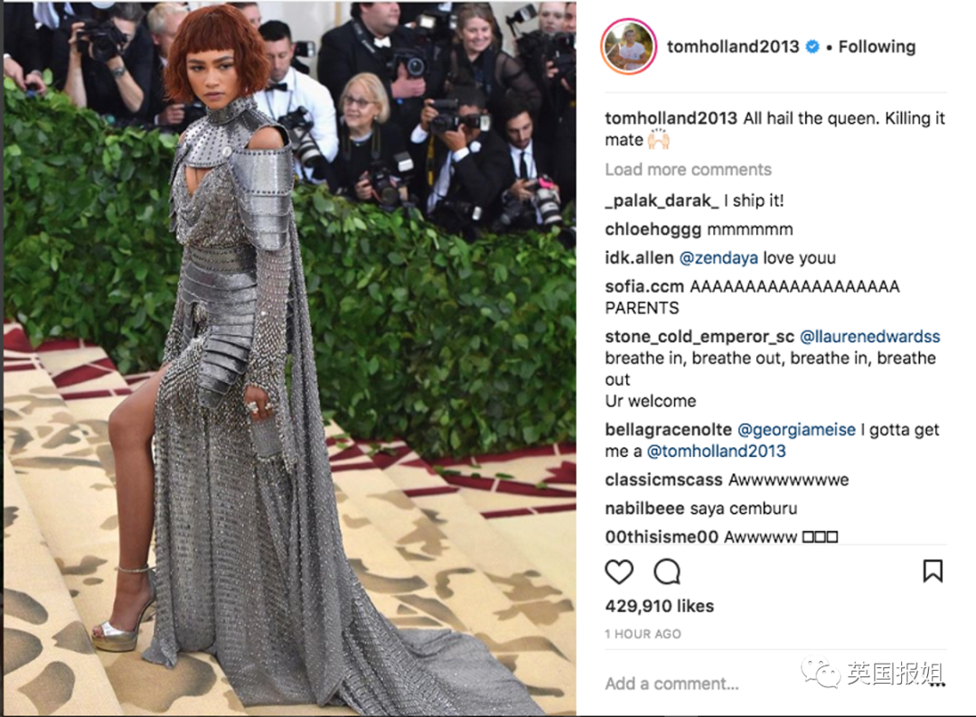赞达亚出席Met Gala的时候,荷兰弟还在ins上po绯闻女友的造型图,大夸特夸。