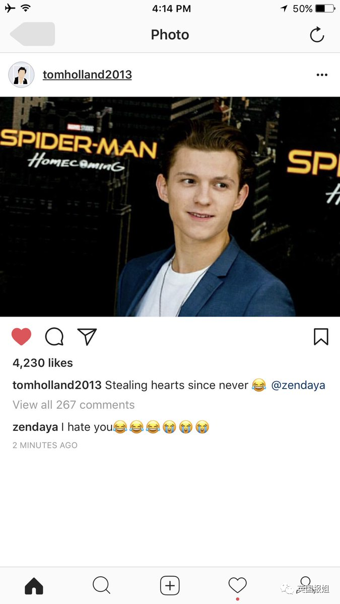 这也没干啥,就是美女发自己的美照罢了。荷兰弟看到后,就起了小心思,也发了张自己《蜘蛛侠》的红毯照,写的文案和赞达亚对仗:从来没偷走别人的心。