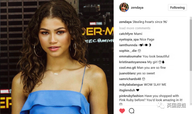 赞达亚先是在ins上发了张自己《蜘蛛侠》的红毯照,配文:从96年以来就一直在偷走别人的心。(赞达亚1996年出生)