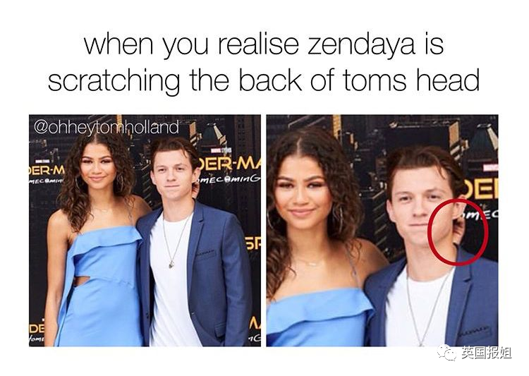 发现赞达亚的手放在了荷兰弟头边的亲密举动。