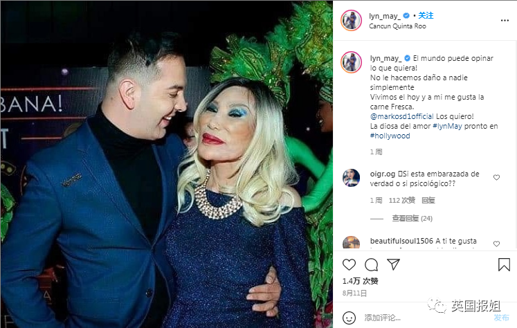 如今她68岁高龄怀孕,还有个年龄差这么大的鲜肉“男友”,这两件事叠加在一起后马上就把Lyn送上了舆论的风口浪尖。看到这个消息的吃瓜群众都缓缓打出一个问号,各种质疑声纷至沓来。
