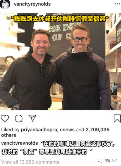不过能和Ryan组cp的可不止Blake,怎么能忘了“休叔”Hugh Jackman呢?