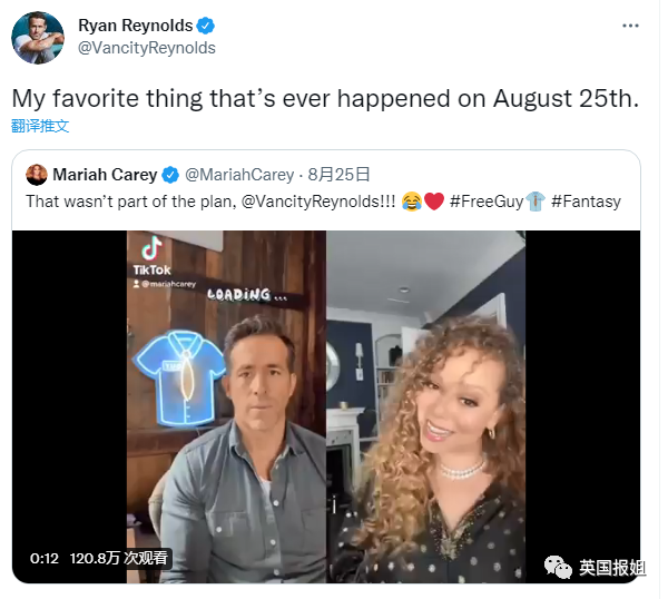 今年8.25Blake生日,Ryan出手了,他这回倒是一点都没发Blake相关的内容。就转了牛姐和自己tiktok合拍的一条推说:“我最喜欢的事情发生在8月25日。”