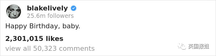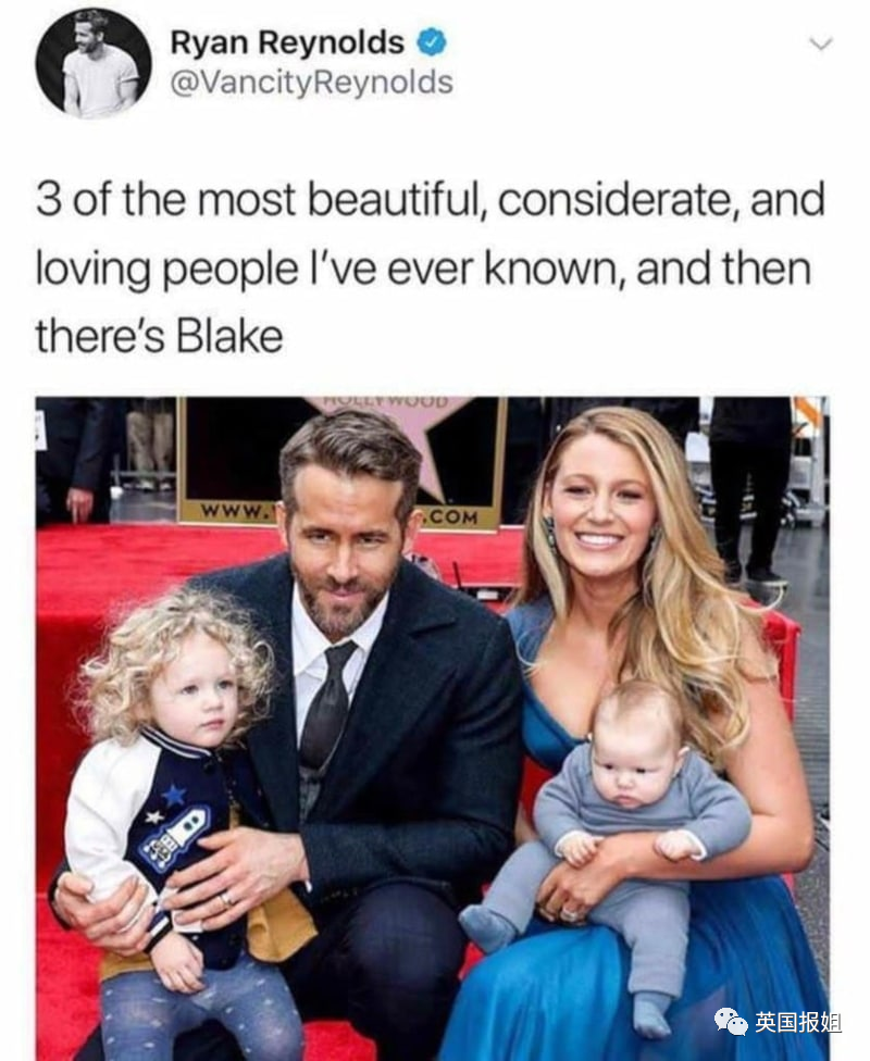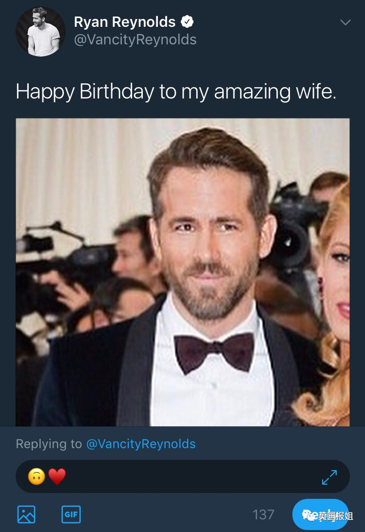 Ryan嘴里说着:“祝我最棒的老婆生日快乐”,然后照片里把Blake三分之二的脸都给裁了。