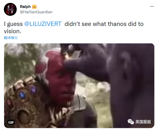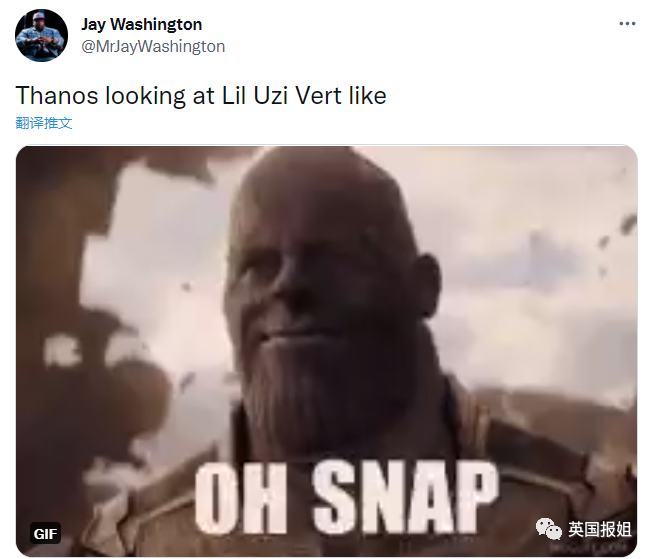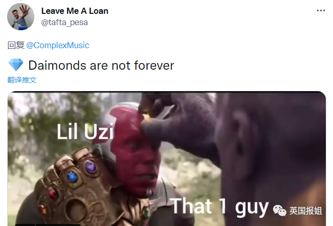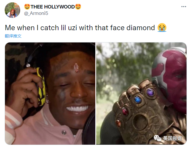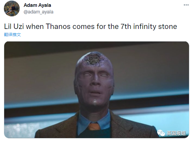 “哥们儿从Lil Uzi Vert变成Lil Uzi Vision(幻视)了。”