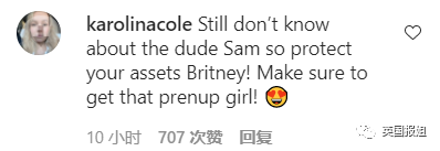 “还不知道那个叫Sam的男的到底是个啥人,所以保护好你的财产啊布兰妮!宝,一定要签婚前协议!”
