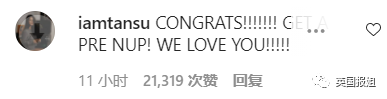 在她宣布订婚消息的那条ins下,评论里绝大多数都在劝她千万要签婚前协议。