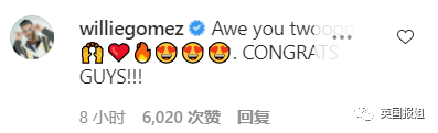 “祝贺!!!记得签婚前协议!!我们爱你!!!!”