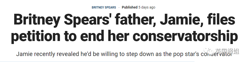 当地时间上周二,布兰妮的父亲杰米终于向洛杉矶高等法院提交了请愿书,要求结束自己对女儿的监管。