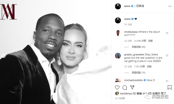 但无论外人是如何想的,当事人还是一贯保持低调的姿态,啥回应也没有。直到昨天阿黛尔发布了甜甜的合照后,这事儿才算定下来,任谁看都会觉得两人正式公开了。