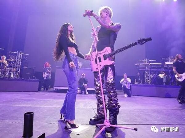 当晚,梅根还在舞台上甜蜜地介绍MGK上场表演,