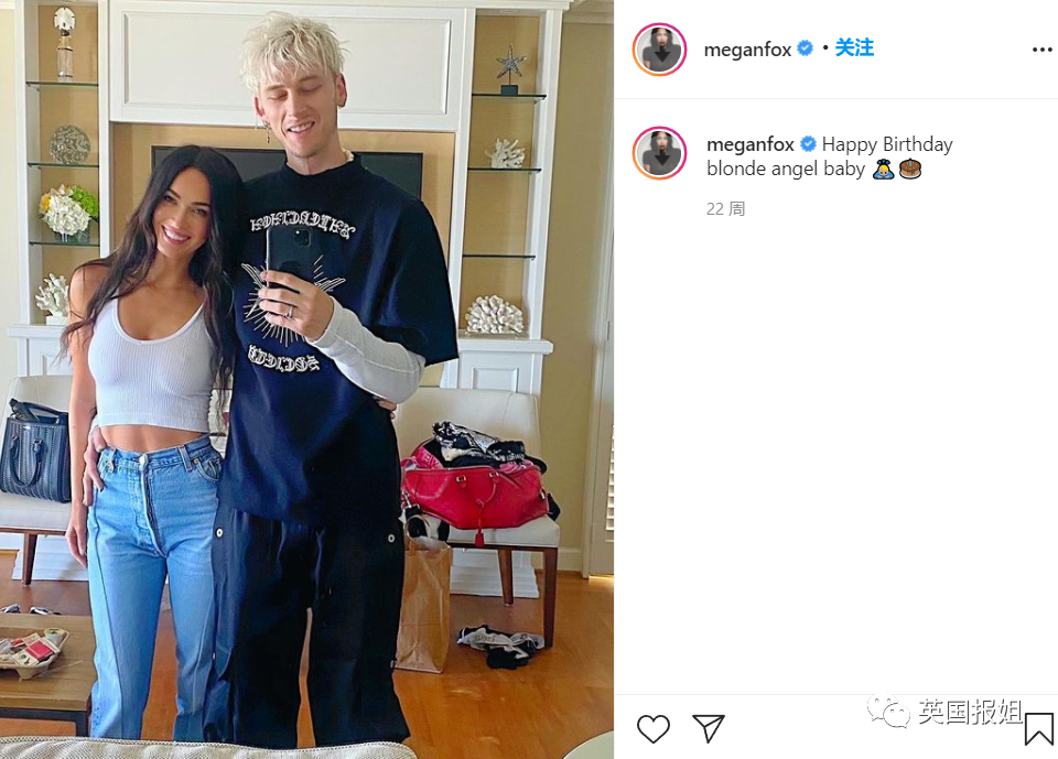 今年MGK的31岁生日,梅根在社交平台上送生日祝福,爱称都是“金发天使宝贝”,真的很爱了。