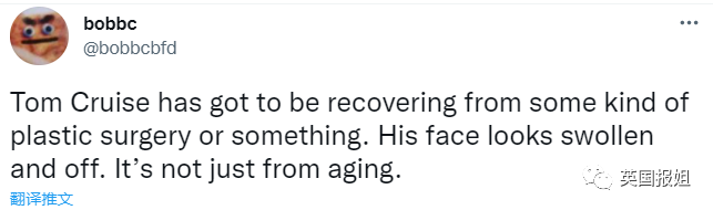 “阿汤哥是在整容恢复期还是什么,他的脸很肿很不对劲。不仅仅是因为衰老吧。”