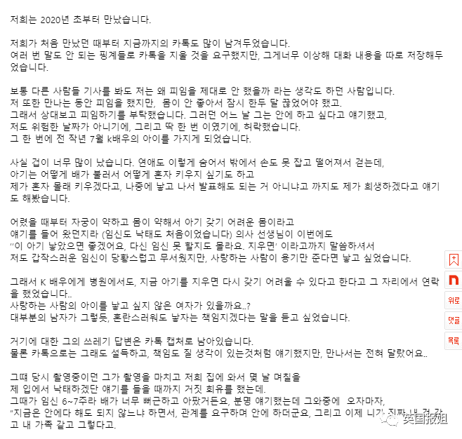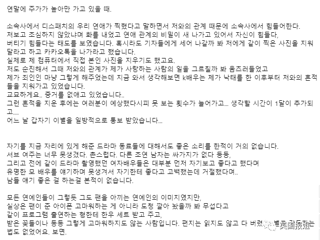 在文章中,这位发帖人声泪俱下地控诉了K演员对她做出的种种残忍行径,“人人以为他善良,其实根本就是个毫无良心和罪恶感的垃圾”。