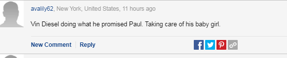 “范迪塞尔正履行着他的承诺,很好地照顾着保罗的宝贝女儿。”