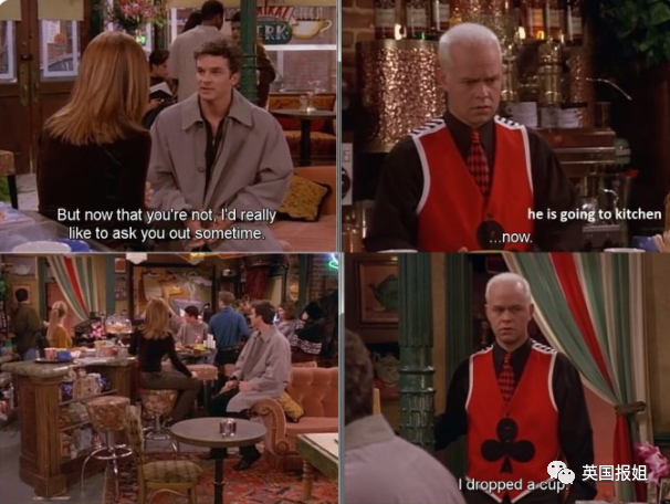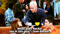 在六人组中喜欢瑞秋,自然也就意味着对罗斯充满敌意了,毕竟大家都懂的,瑞秋和罗斯在《老友记》里分分合合、不断纠缠,很多时候他们谈恋爱甜蜜都是在冈瑟工作的Central Perk里。