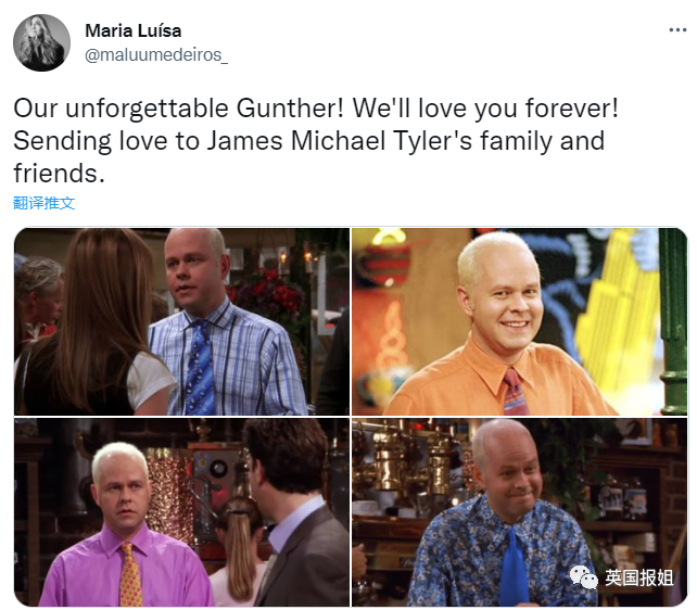 “安息吧,James Michael Tyler,他在与癌症的交战中不幸失败。但他永远是我们的冈瑟,是Central Perk先生。”