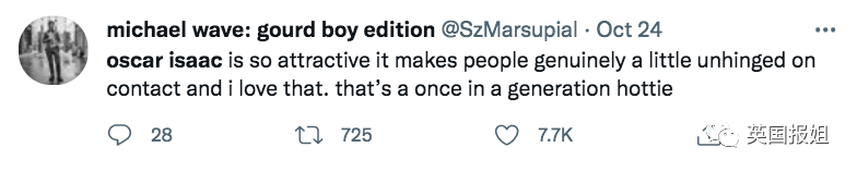“奥斯卡·伊萨克太有魅力了,以至于大家都有点精神错乱(爱了爱了)。这可是一代人里才出一位的辣男子!”