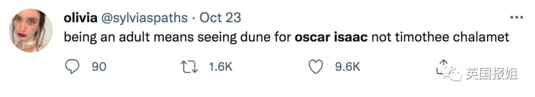 “成年人都懂,看《沙丘》关注的是奥斯卡·伊萨克而不是甜茶。”