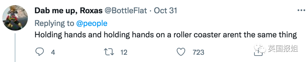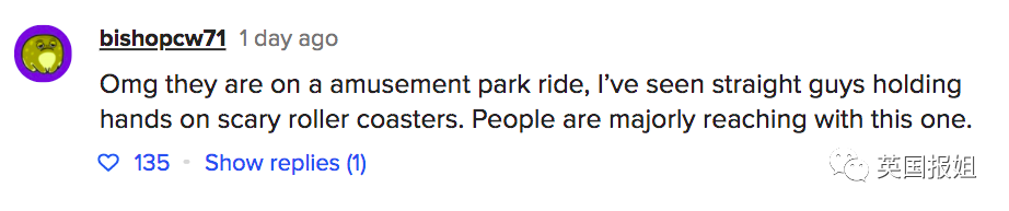 “老天鹅!他们是在游乐园坐过山车,我见过直男朋友们都在恐怖过山车上牵手,大家也想太过了。”