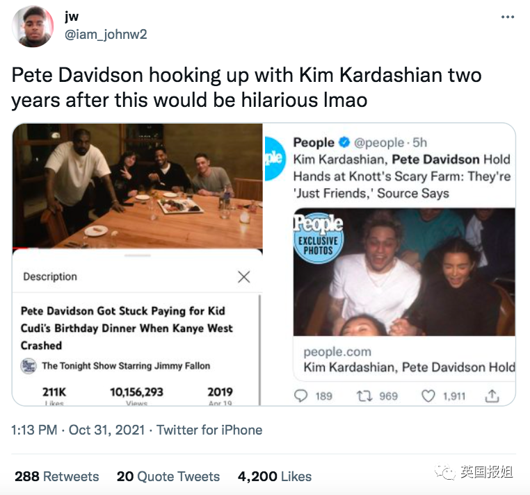 皮特回忆的这段故事把大家逗的不行,哪知道“命运弄人”,两年以后,吃瓜群众翻出这段话,说他向侃爷“复仇”成功orz。