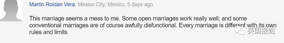 “在我看来这婚姻真是一团糟,其实有些开放式关系可以维持的很好,一些传统婚姻也会面临惨痛的失败,每个婚姻关系都是独特的,它有自己的规则和限制。”