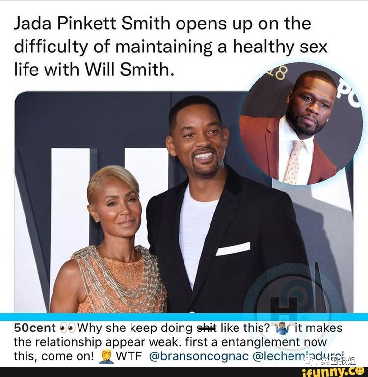 首先娱乐圈就有人看不下去了,著名说唱歌手50 cent发ins谴责Jada:“她为啥一直做这样的事,让他们夫妻的关系越来越脆弱,先是出轨鲜肉又来爆料,搞什么啊?”
