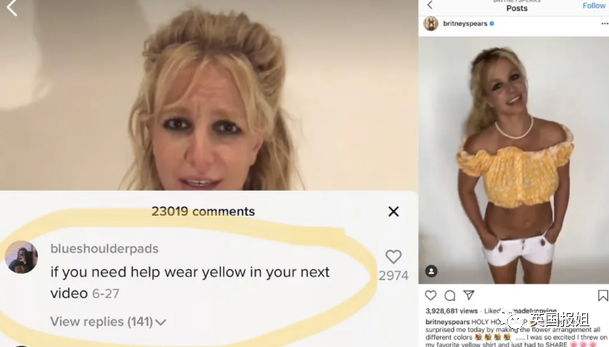 有粉丝曾留言,如果你被控制了,就穿上黄衣服,结果布兰妮在下一条视频中真换上了黄衣服;还有人说,如果你需要帮助,就眨两次眼,然后她也这么做了……