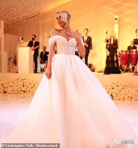 这件礼服出自高定婚纱品牌Galia Lahav,把帕里斯完美的身材衬得恰到好处。