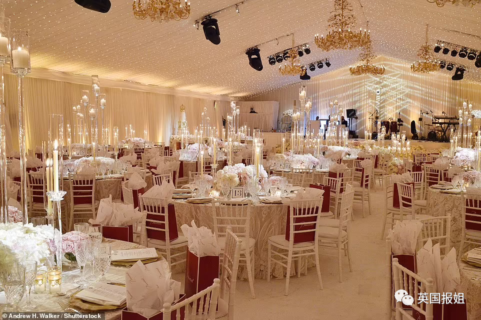 先来看看婚礼现场,布置得太有排面,好像好莱坞颁奖典礼。