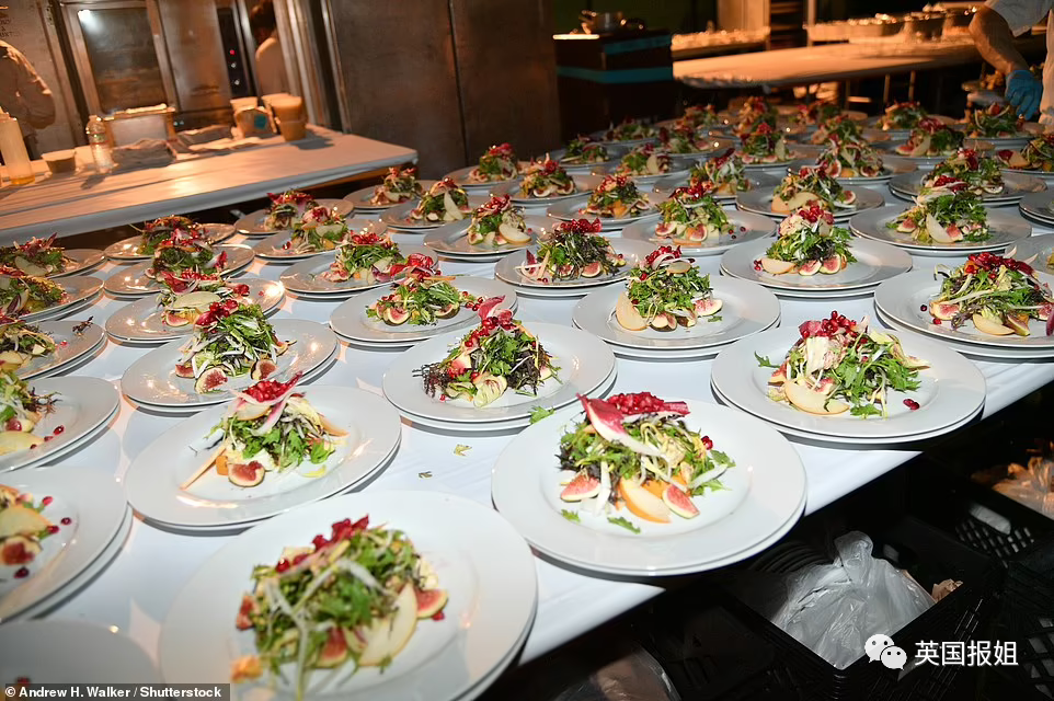 各式各样的菜肴点心应接不暇,给客人们喝的是一款特制的粉红色饮料。
