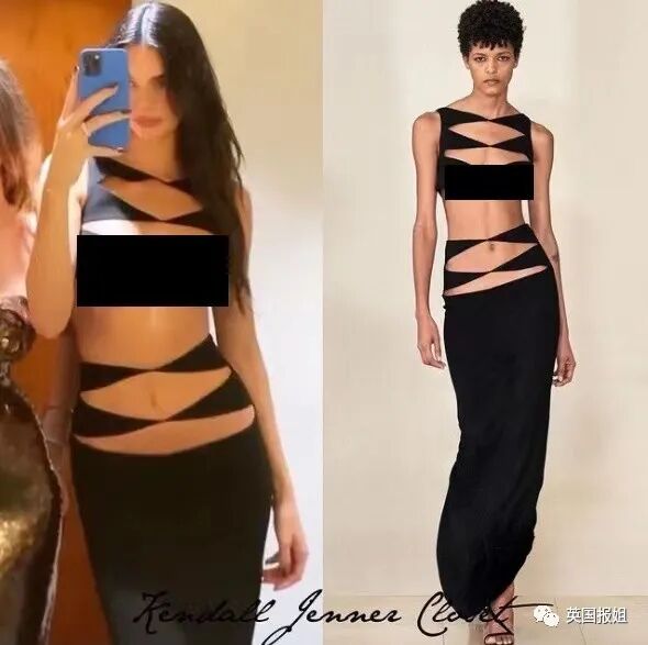 看图片就可以感受出来,肯豆这件裙子的上半身非常透风,是很性感很辣妹的款式。