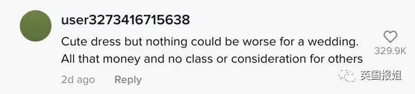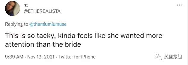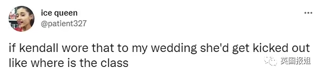 “裙子挺好看的,但是穿着去婚礼的话就实在很糟糕。(肯豆)有钱却没有品味,也不会为别人着想。”