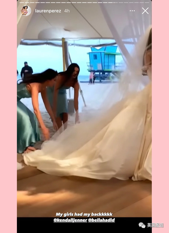 被喷的原因很简单,因为网友突然发现,肯豆居然在好友Lauren Perez的婚礼上,穿了一件超级无敌暴露的黑色连衣裙。(Lauren Perez是肯豆闺蜜,一位成功的女商人)