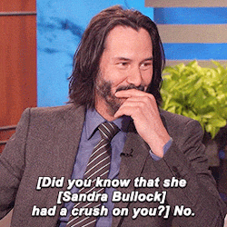 2019年,基努上节目时,主持人回放了前一年桑德拉坦白对他心动暗恋的画面,基努回:“我不知道她喜欢我,但她也不知道,我其实当时也喜欢她。”