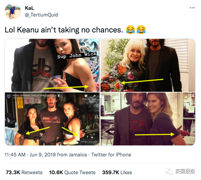 评论区也有乱入的,比如对基努表达无尽爱意的: