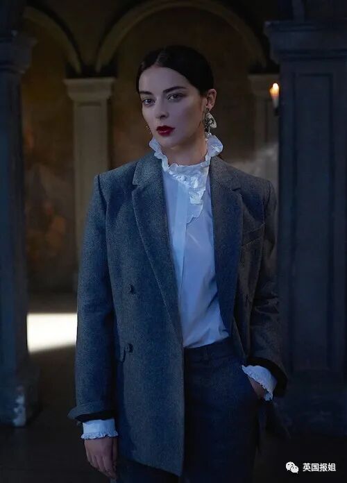 39岁的美人,脸庞和气质都褪去了稚嫩,穿起现代服装来,凌厉帅气。