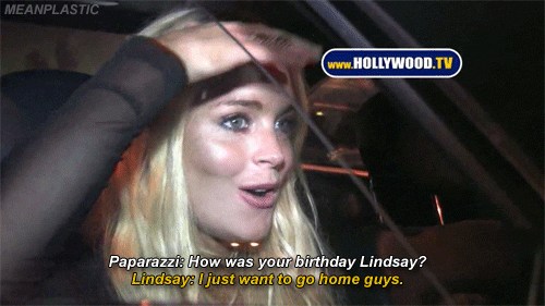 狗仔追到车前拍她,问她问题,而林赛只是满脸疲惫,她无奈地回答,又好像是在恳求,恳求狗仔放她“回家”。