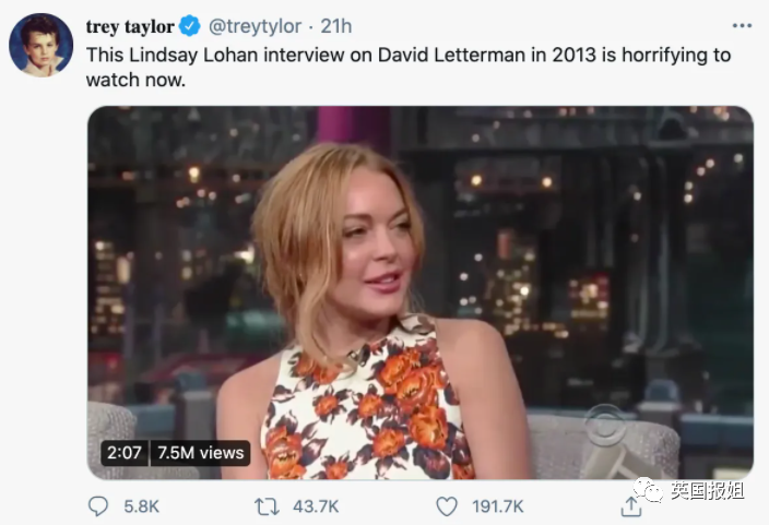 当时,林赛正准备参加为期 90 天的康复治疗。在这之前,为了新电影,她前去大卫莱特曼的深夜节目做客宣传,这种节目的气氛本应该是轻松愉悦的,但在主持人无休止地询问她关于“康复”、“上瘾”等问题的状态之下,娱乐节目硬生生变为“法制访谈”。