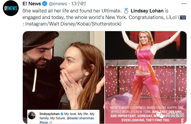 连媒体也真情流露,感叹林赛等了一生,终于找到了她的幸福。