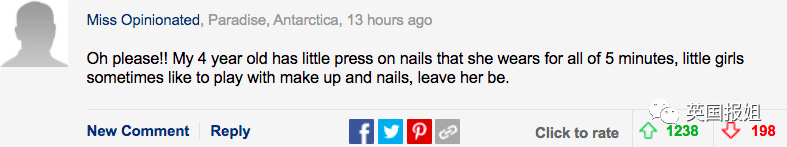 “拜托!我家四岁的娃也玩贴指甲,小女孩就是喜欢化妆和美甲游戏,放过她吧。”
