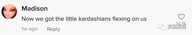 “现在小卡戴珊们也来向我们炫富了”