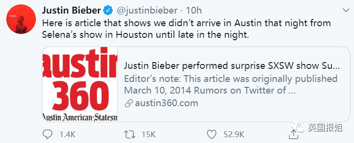 第七条推特,比伯给出了另一篇报道。
