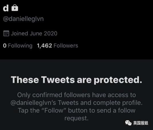 爆料者@danielleglvn 账户,所有推特突然迅速转为“不可见”。