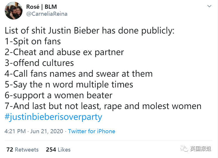 还有人开始翻旧账,说“贾斯汀比伯做出来这种事情并不出人意外,他本来就是劣迹斑斑”。