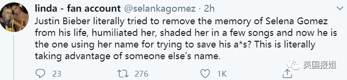 “之前比伯是怎么羞辱赛琳娜的?现在又用她的名字为自己作证?这完全就是利用!”